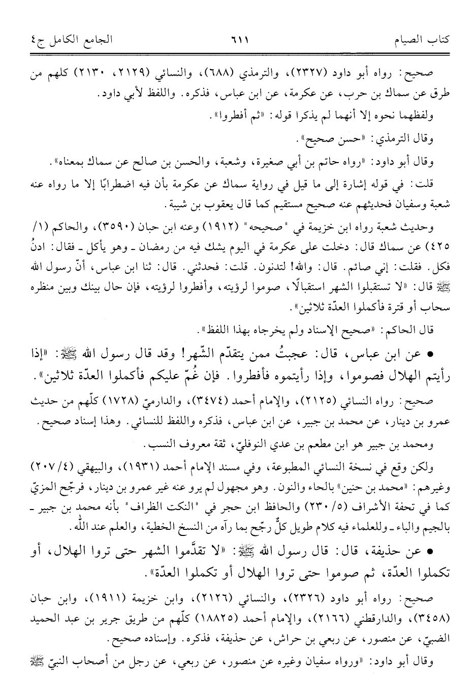 كتاب الجامع الكامل في الحديث الصحيح الشامل المرتب على أبواب الفقه (اسم الجزء: 4)