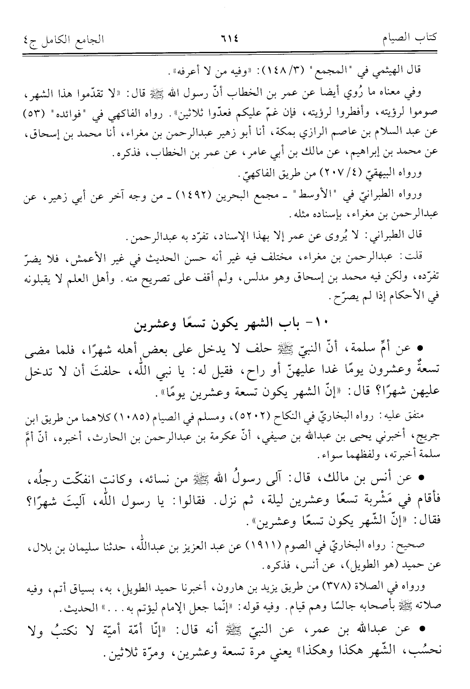 كتاب الجامع الكامل في الحديث الصحيح الشامل المرتب على أبواب الفقه (اسم الجزء: 4)