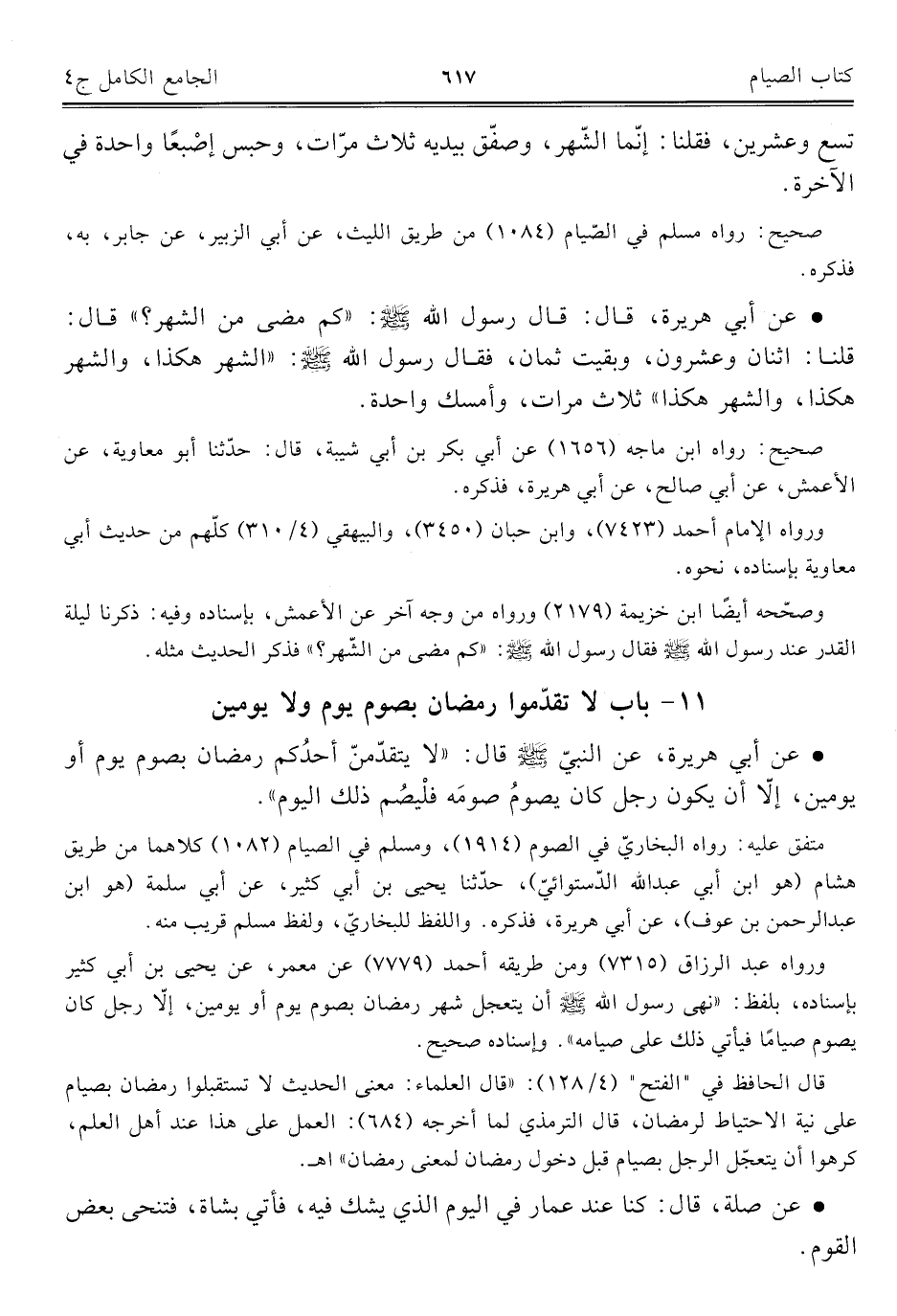 كتاب الجامع الكامل في الحديث الصحيح الشامل المرتب على أبواب الفقه (اسم الجزء: 4)