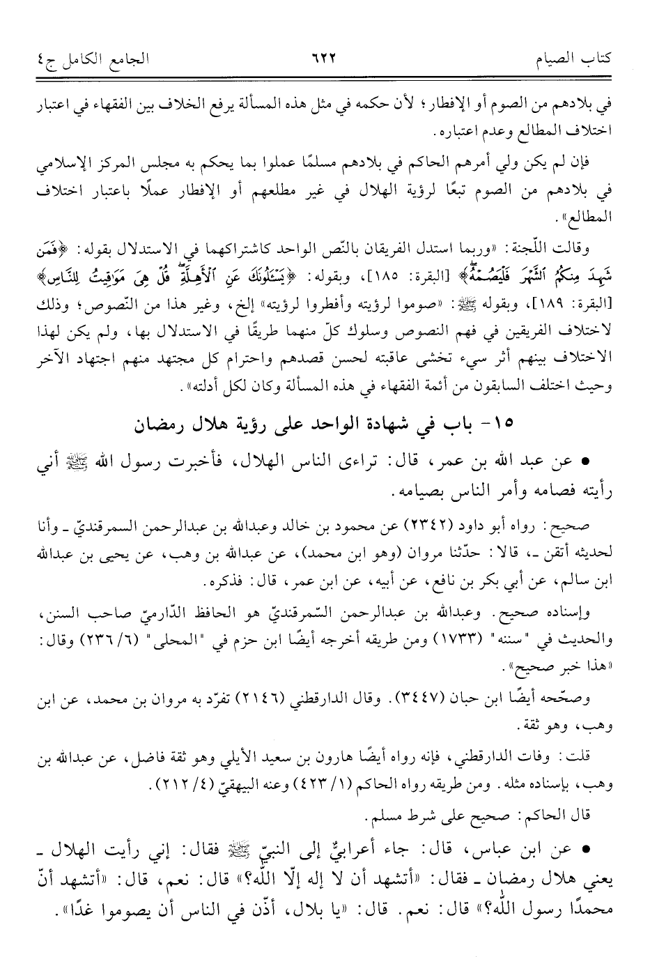 كتاب الجامع الكامل في الحديث الصحيح الشامل المرتب على أبواب الفقه (اسم الجزء: 4)