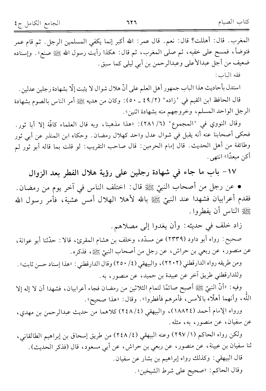 كتاب الجامع الكامل في الحديث الصحيح الشامل المرتب على أبواب الفقه (اسم الجزء: 4)