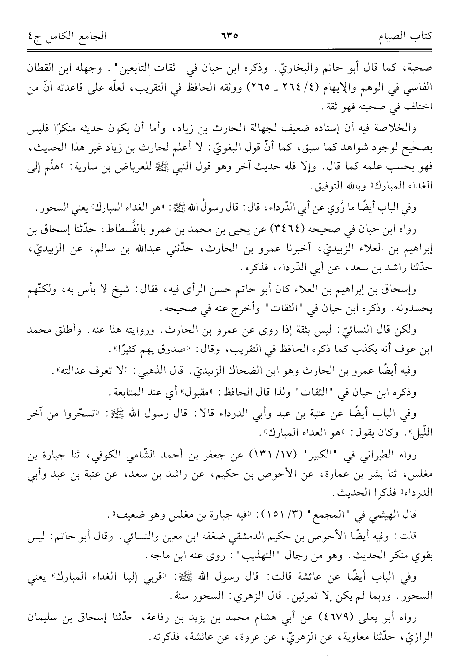 رواه ابن حبان في صحيحه (٣٤٦٤) عن يحيى بن محمد بن عمرو بالفُسطاط، حدّثنا إسحاق بن إبراهيم بن العلاء الزبيديّ، أخبرنا عمرو بن الحارث، حدّثني عبد الله بن سالم، عن الزبيديّ، حدّثنا راشد بن سعد، عن أبي الدّرداء، فذكره.