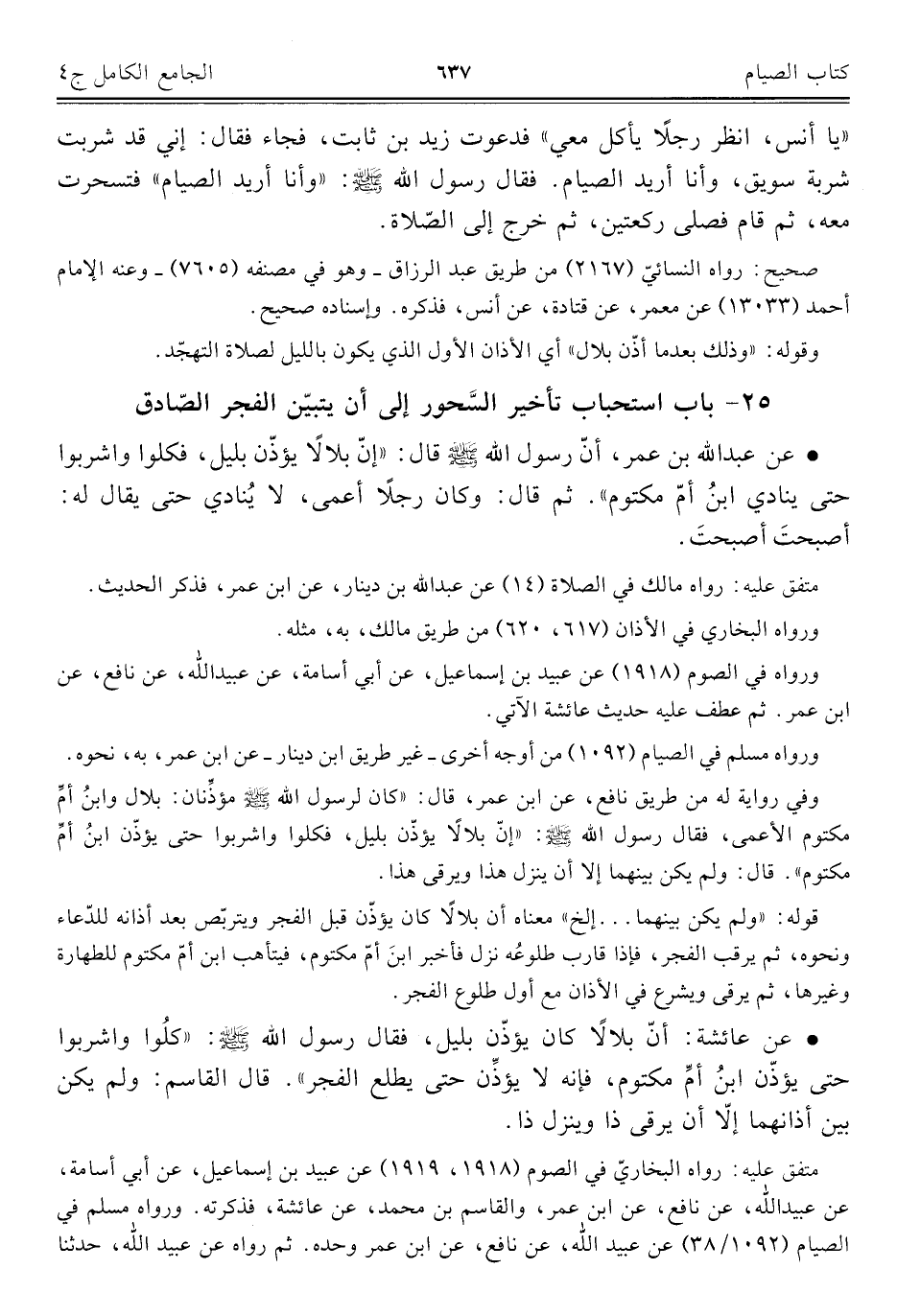 ٢٥ - باب استحباب تأخير السَّحور إلى أن يتبيّن الفجر الصّادق