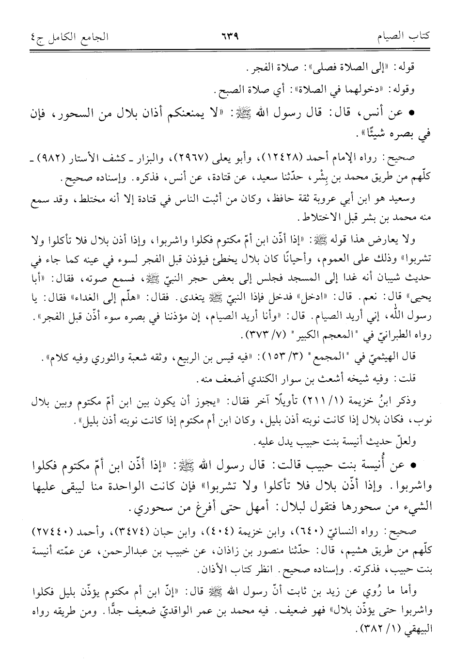 كتاب الجامع الكامل في الحديث الصحيح الشامل المرتب على أبواب الفقه (اسم الجزء: 4)