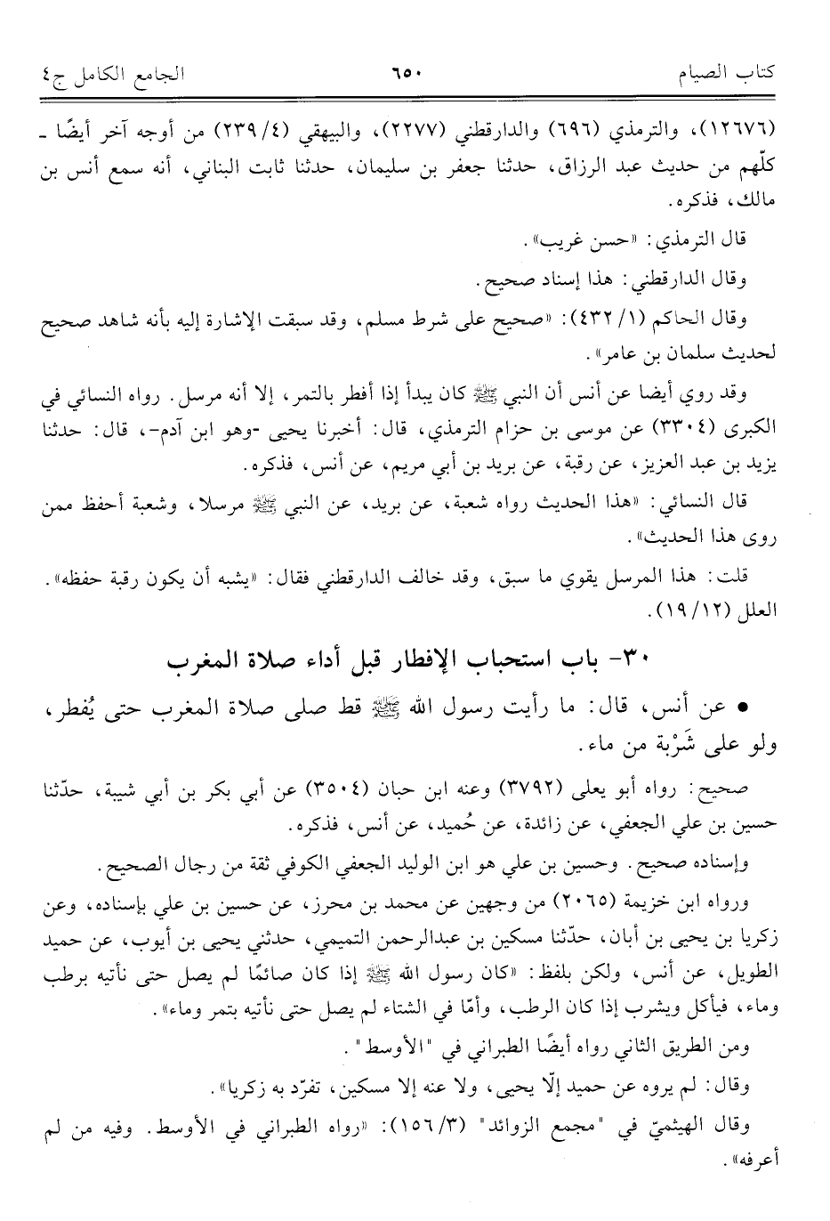 كتاب الجامع الكامل في الحديث الصحيح الشامل المرتب على أبواب الفقه (اسم الجزء: 4)