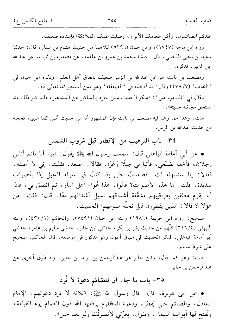 ٣٤ - باب الترهيب من الإفطار قبل غروب الشمس