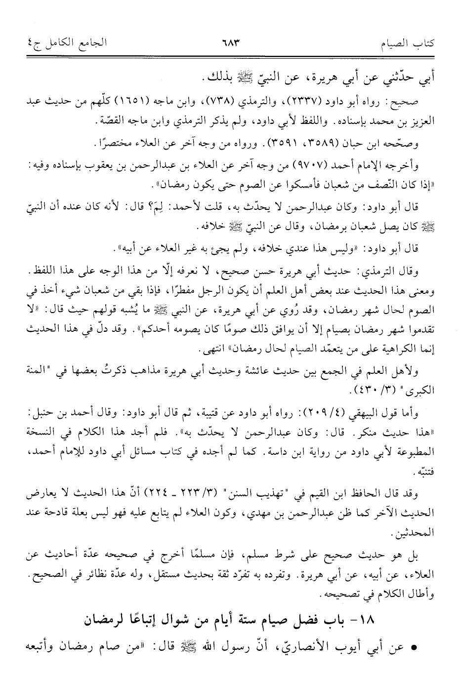 كتاب الجامع الكامل في الحديث الصحيح الشامل المرتب على أبواب الفقه (اسم الجزء: 4)