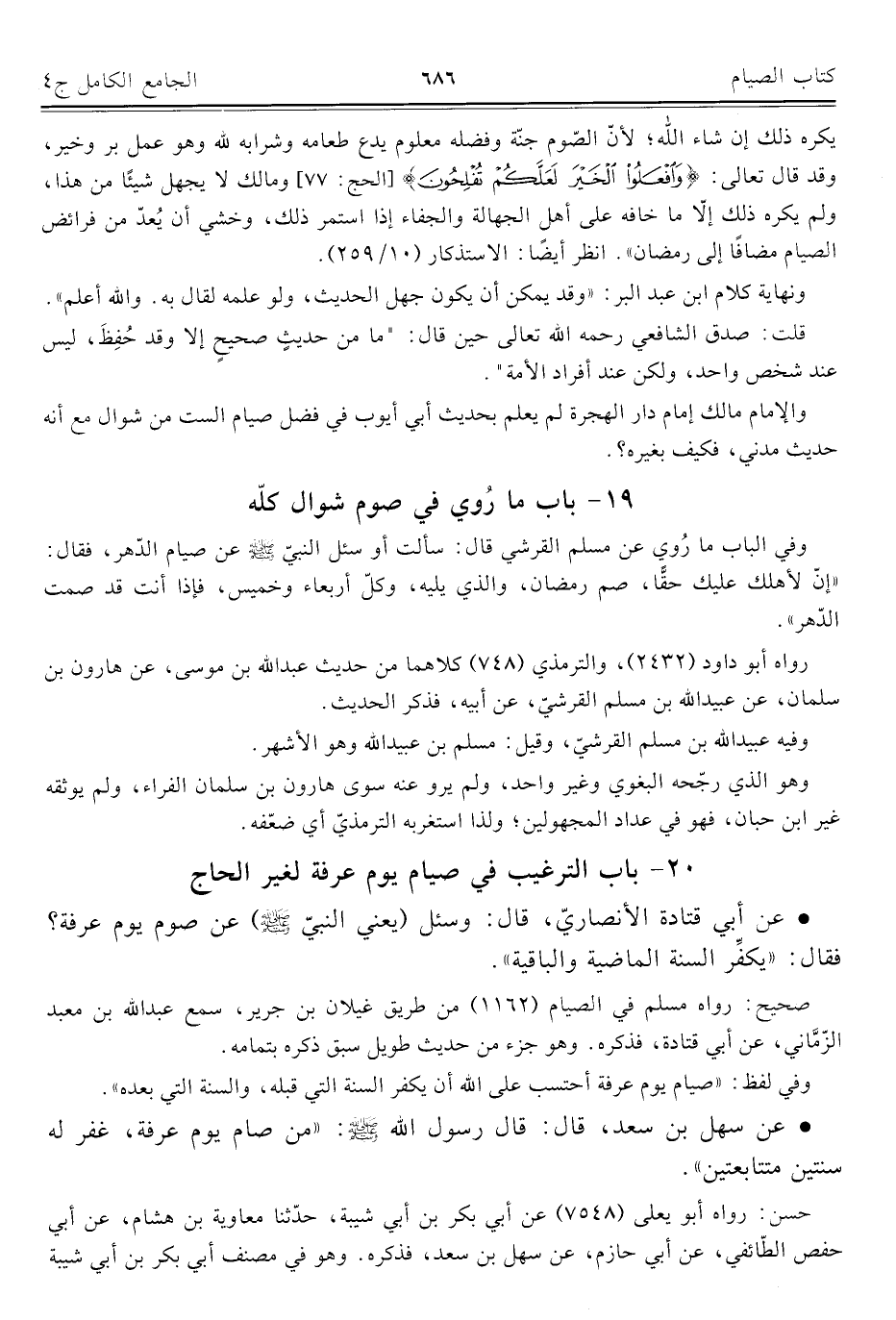 كتاب الجامع الكامل في الحديث الصحيح الشامل المرتب على أبواب الفقه (اسم الجزء: 4)