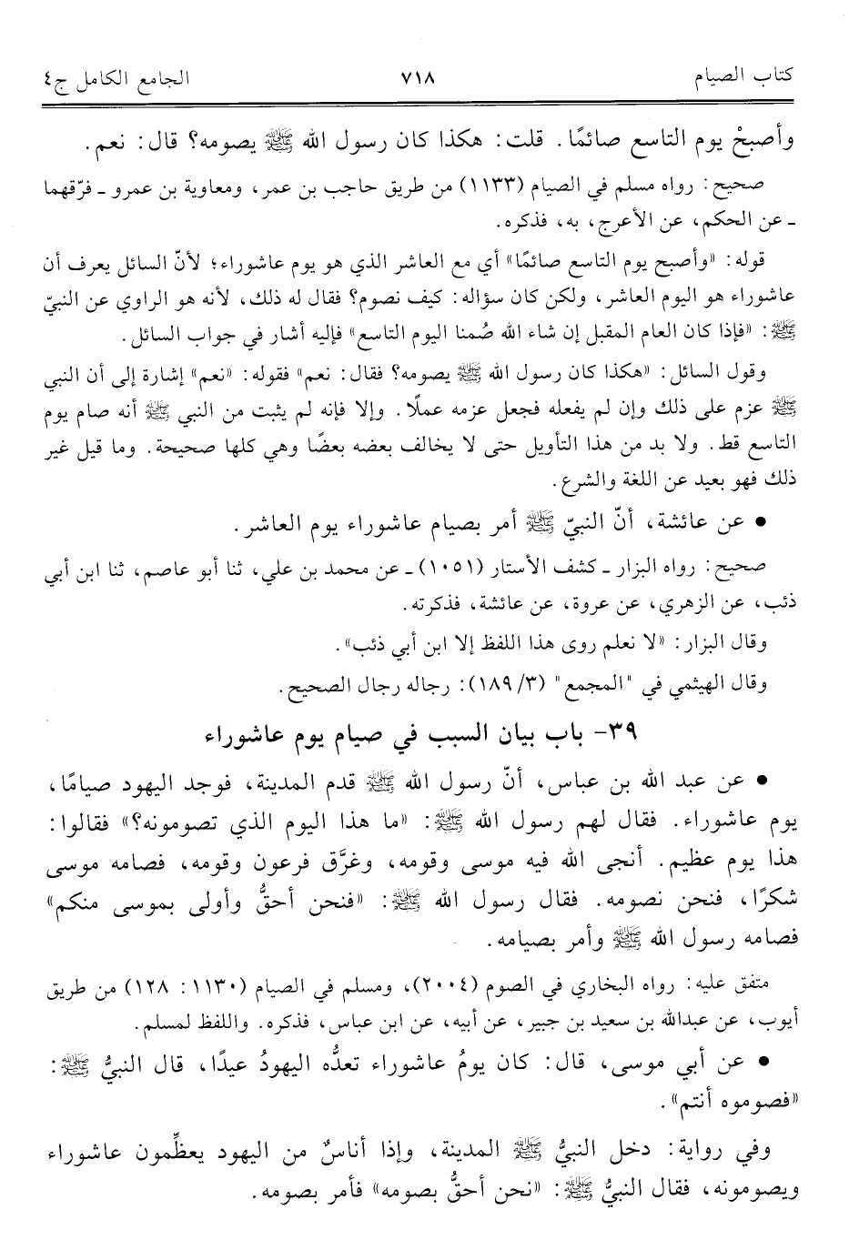 كتاب الجامع الكامل في الحديث الصحيح الشامل المرتب على أبواب الفقه (اسم الجزء: 4)
