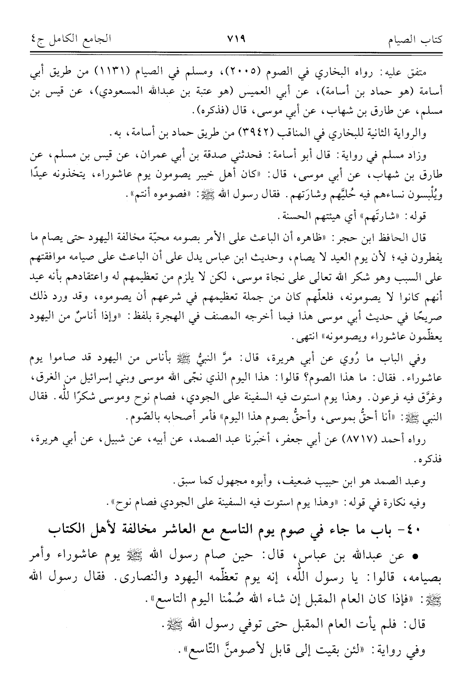 ٤٠ - باب ما جاء في صوم يوم التاسع مع العاشر مخالفة لأهل الكتاب