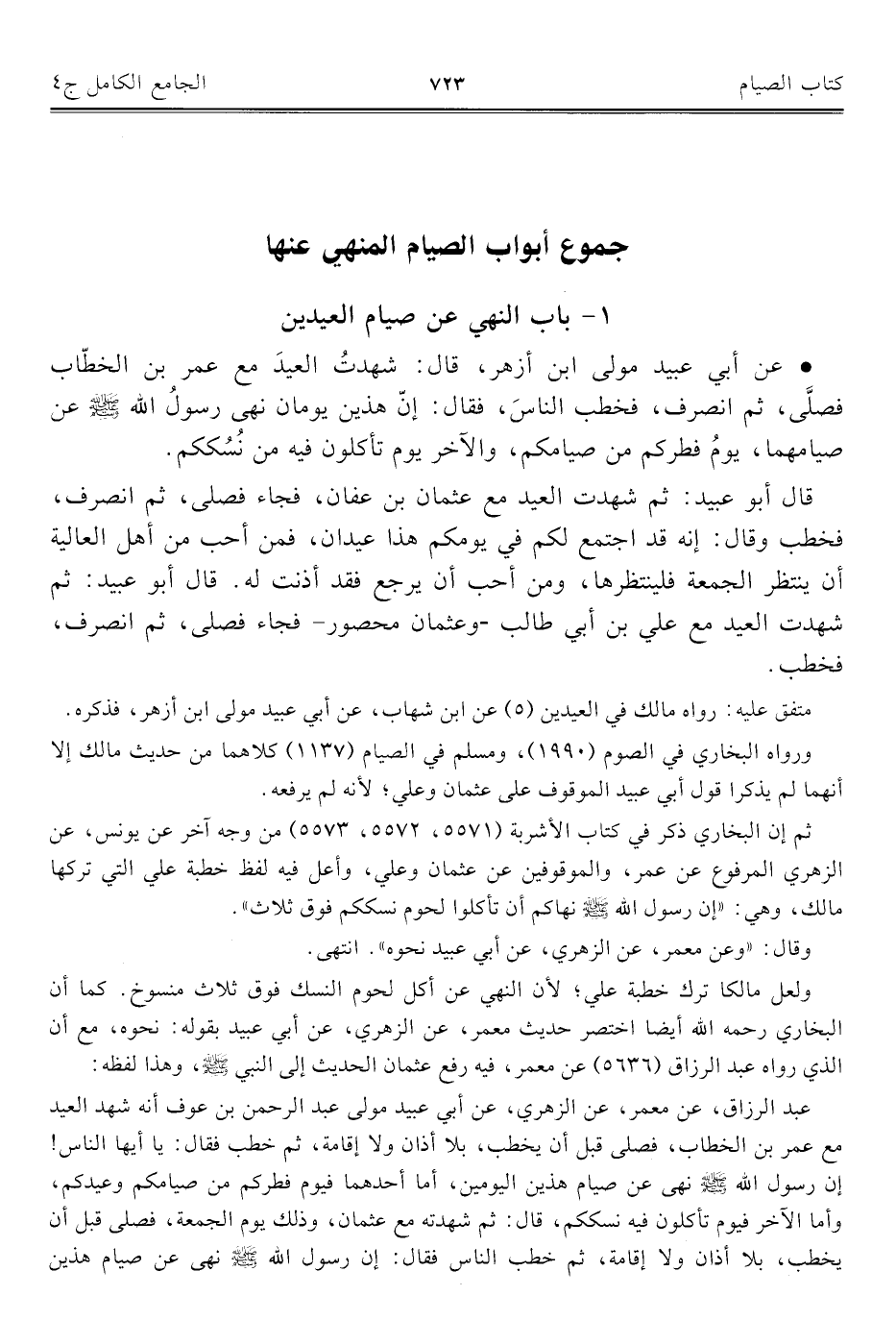 ١ - باب النهي عن صيام العيدين