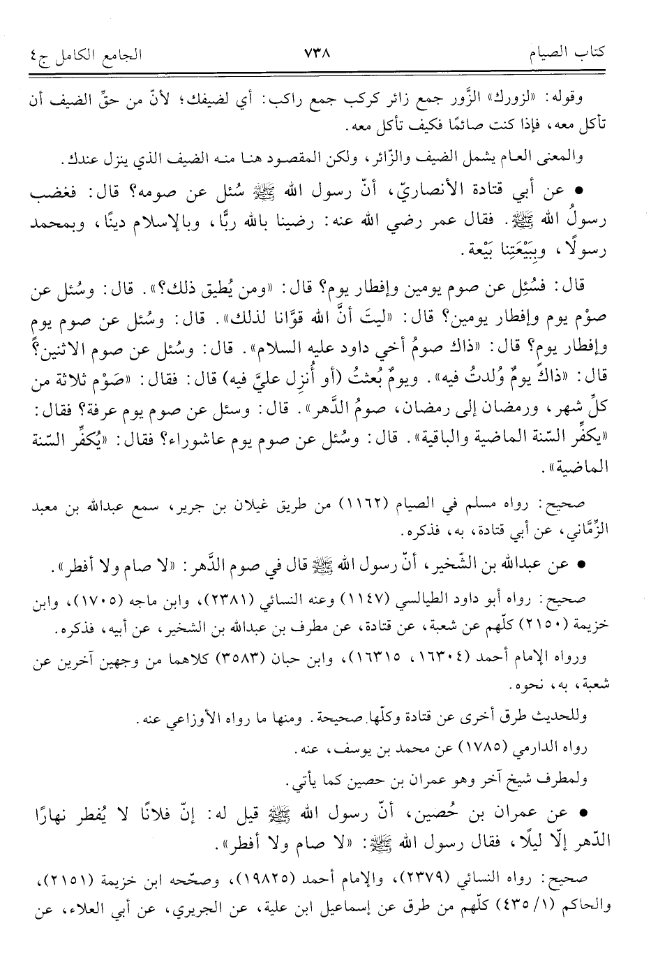 كتاب الجامع الكامل في الحديث الصحيح الشامل المرتب على أبواب الفقه (اسم الجزء: 4)