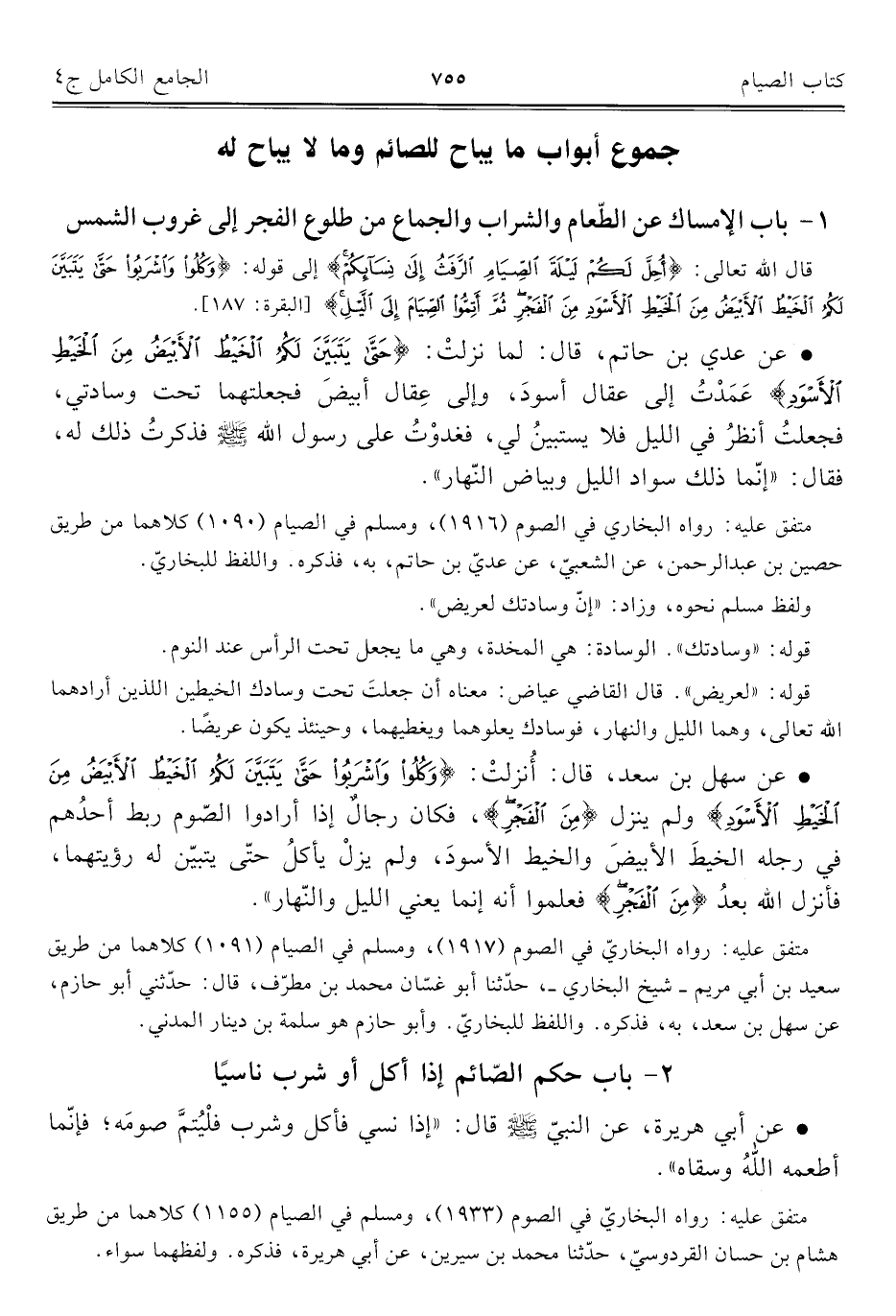 جموع أبواب ما يباح للصائم وما لا يباح له