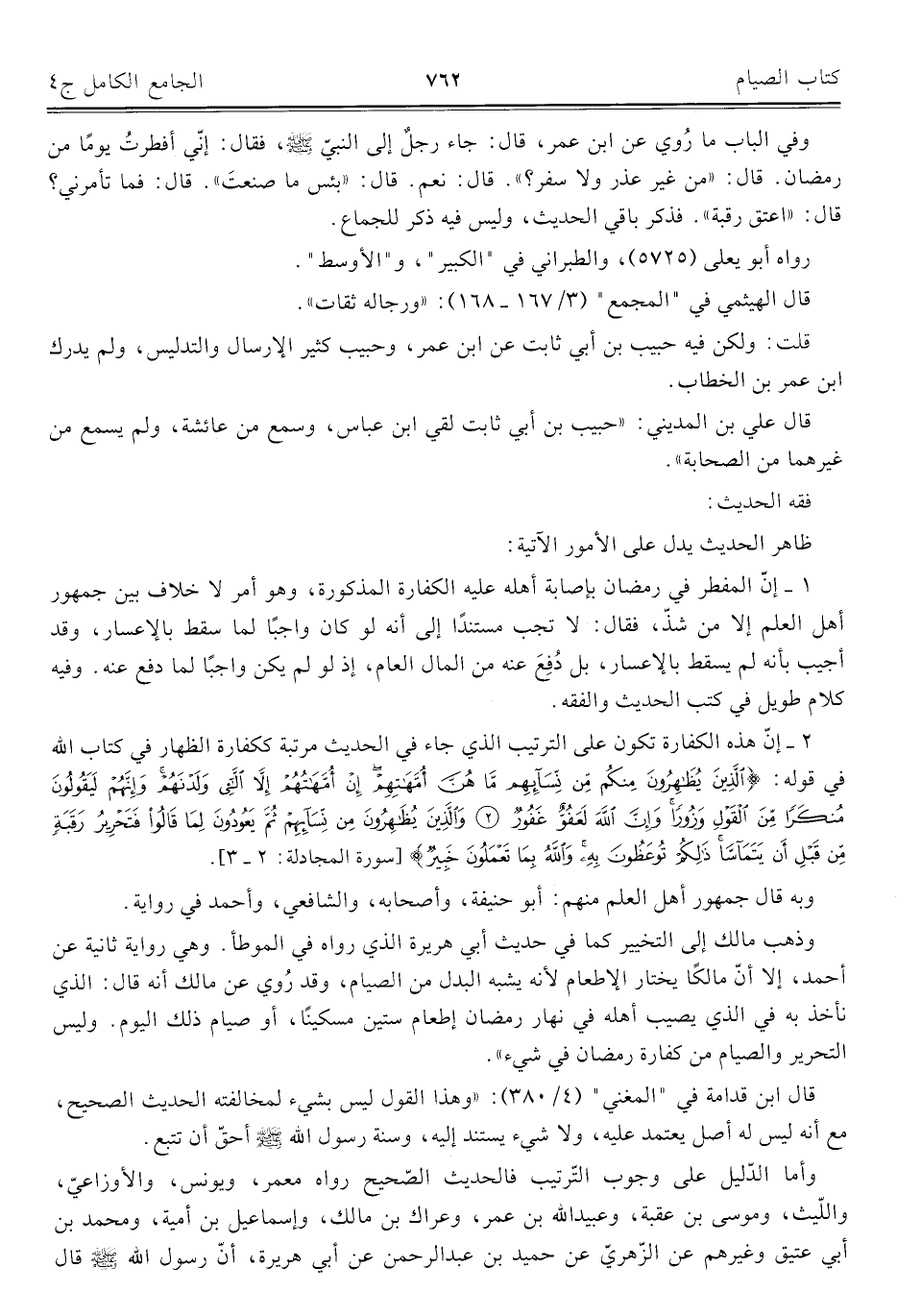كتاب الجامع الكامل في الحديث الصحيح الشامل المرتب على أبواب الفقه (اسم الجزء: 4)