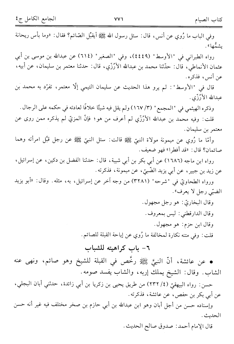 كتاب الجامع الكامل في الحديث الصحيح الشامل المرتب على أبواب الفقه (اسم الجزء: 4)