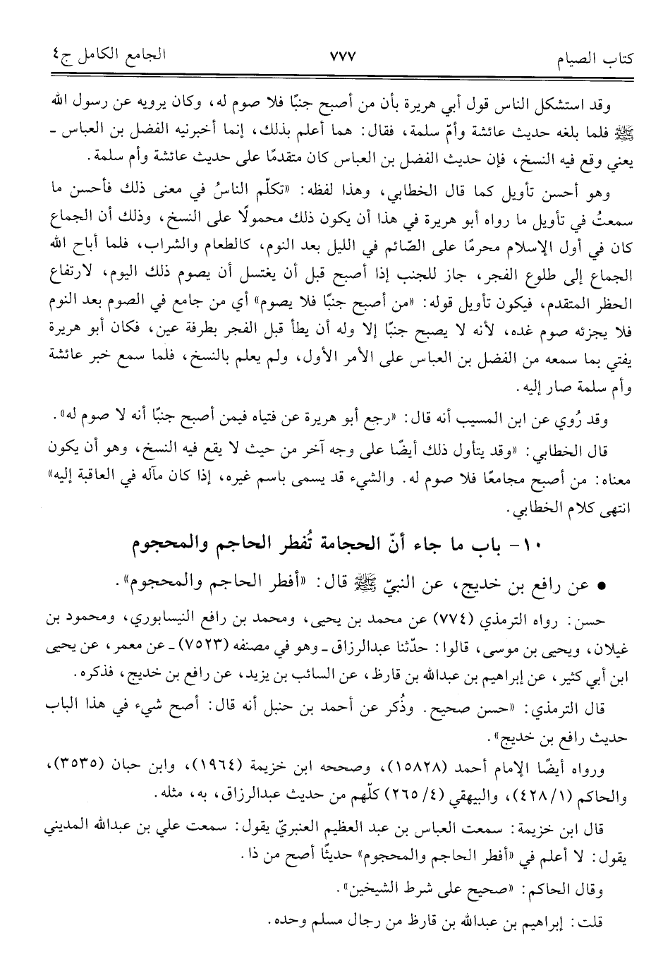 كتاب الجامع الكامل في الحديث الصحيح الشامل المرتب على أبواب الفقه (اسم الجزء: 4)