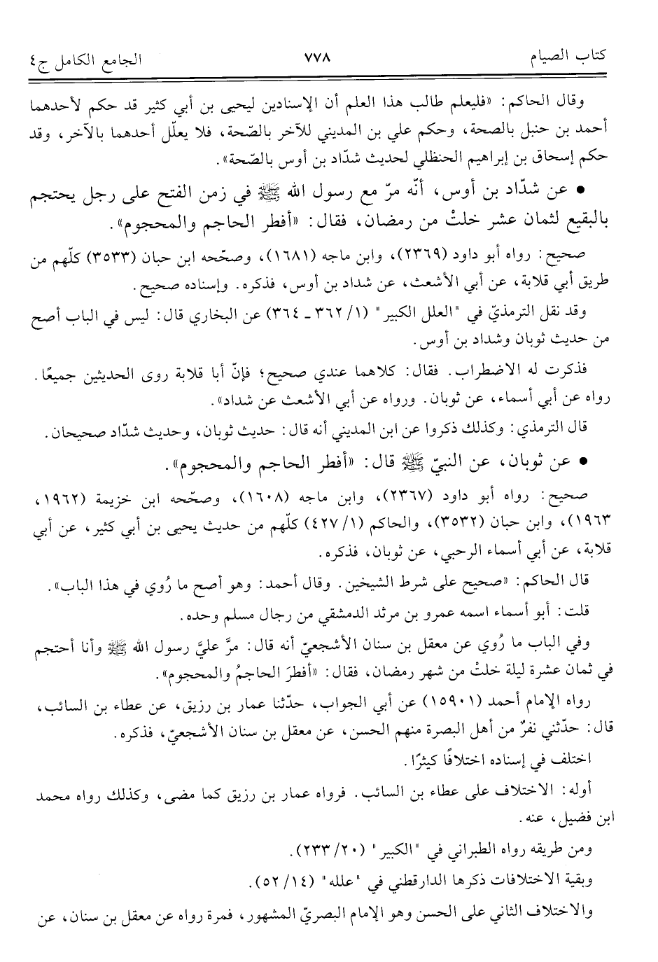 كتاب الجامع الكامل في الحديث الصحيح الشامل المرتب على أبواب الفقه (اسم الجزء: 4)