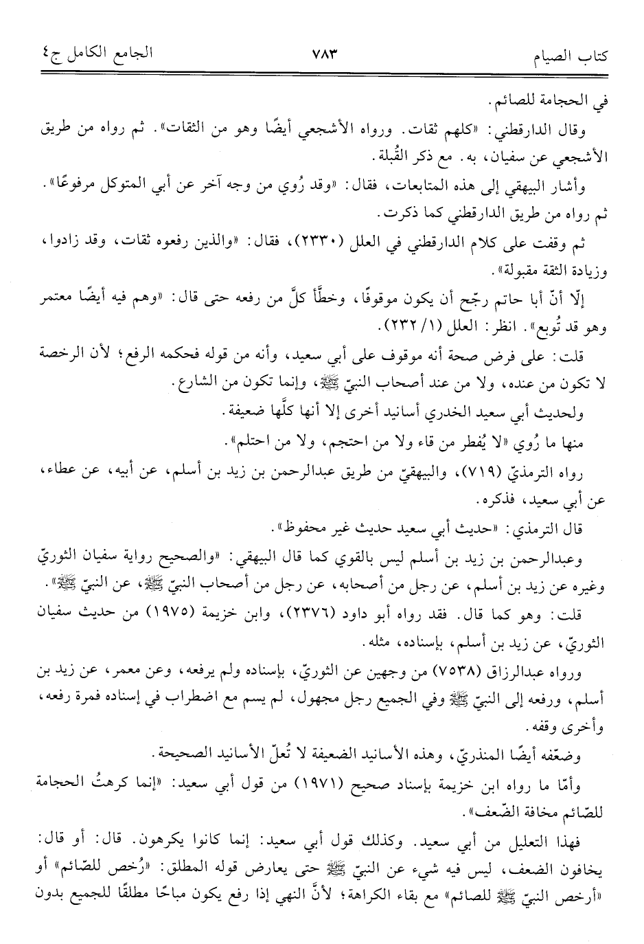 كتاب الجامع الكامل في الحديث الصحيح الشامل المرتب على أبواب الفقه (اسم الجزء: 4)