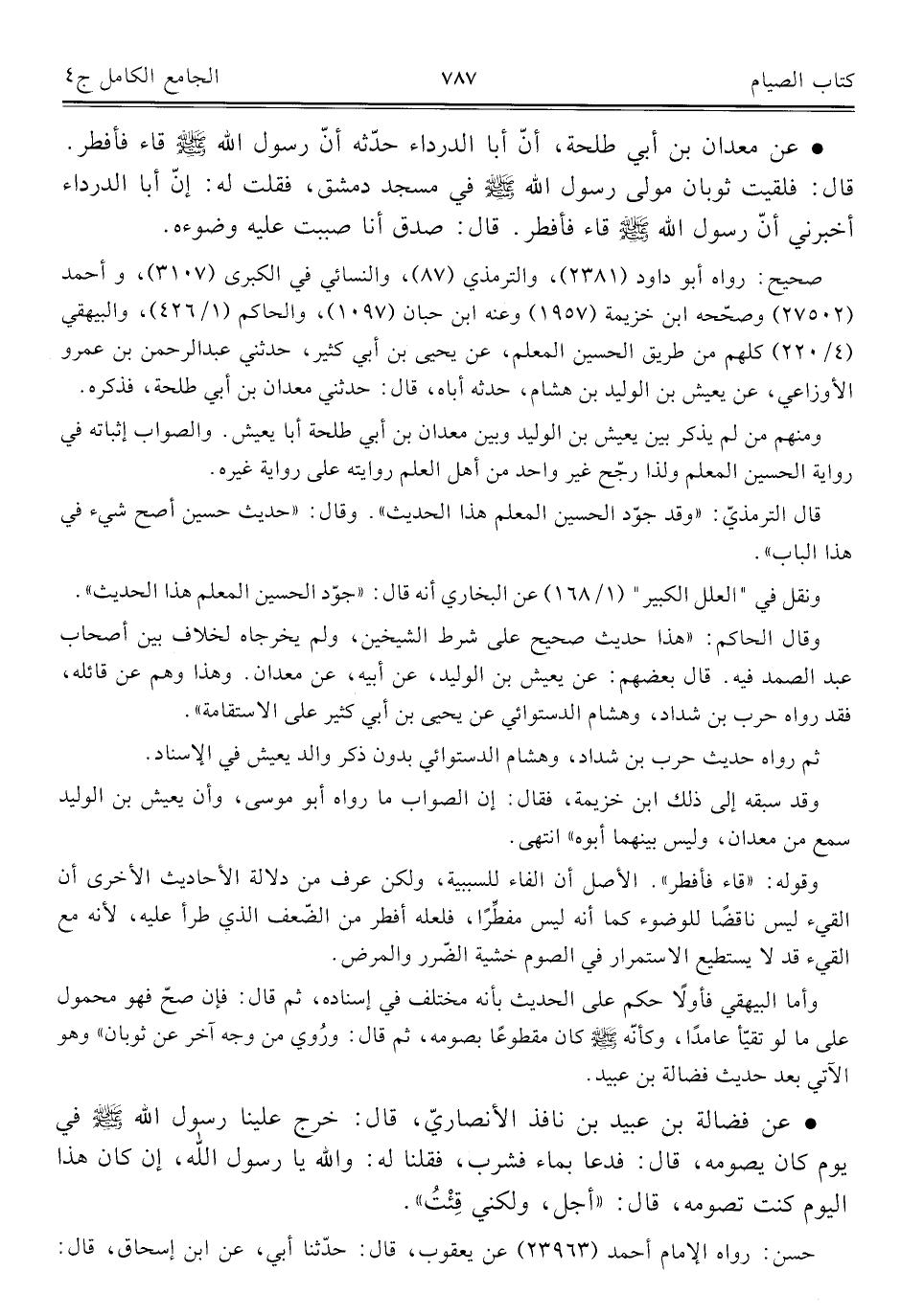 كتاب الجامع الكامل في الحديث الصحيح الشامل المرتب على أبواب الفقه (اسم الجزء: 4)