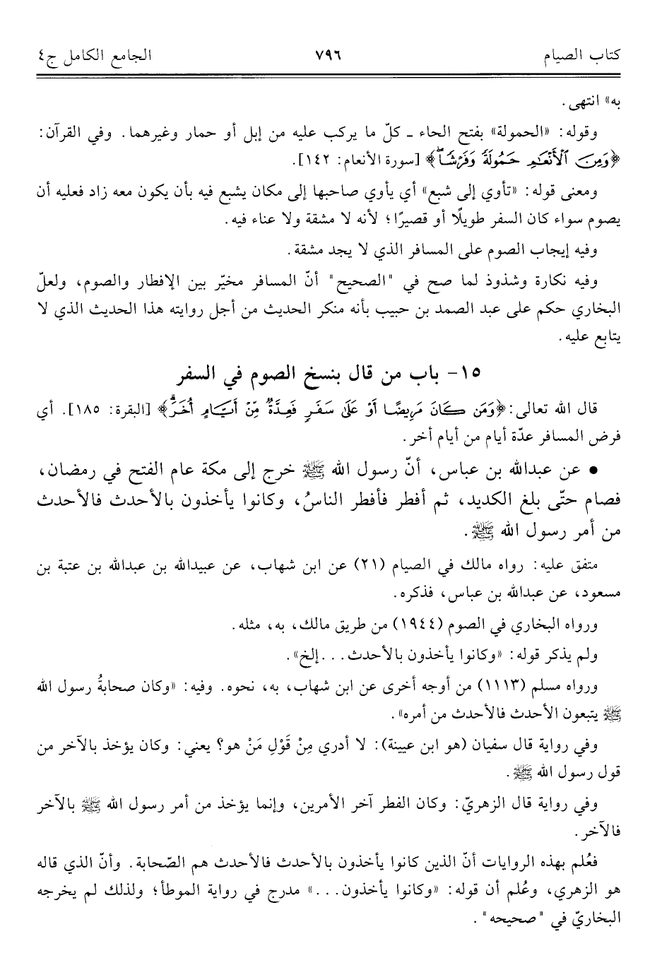 كتاب الجامع الكامل في الحديث الصحيح الشامل المرتب على أبواب الفقه (اسم الجزء: 4)