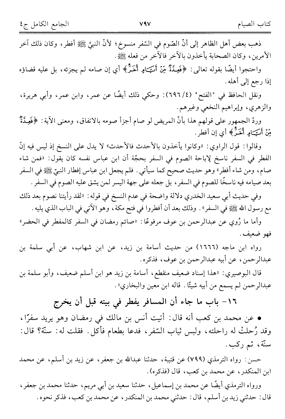 كتاب الجامع الكامل في الحديث الصحيح الشامل المرتب على أبواب الفقه (اسم الجزء: 4)