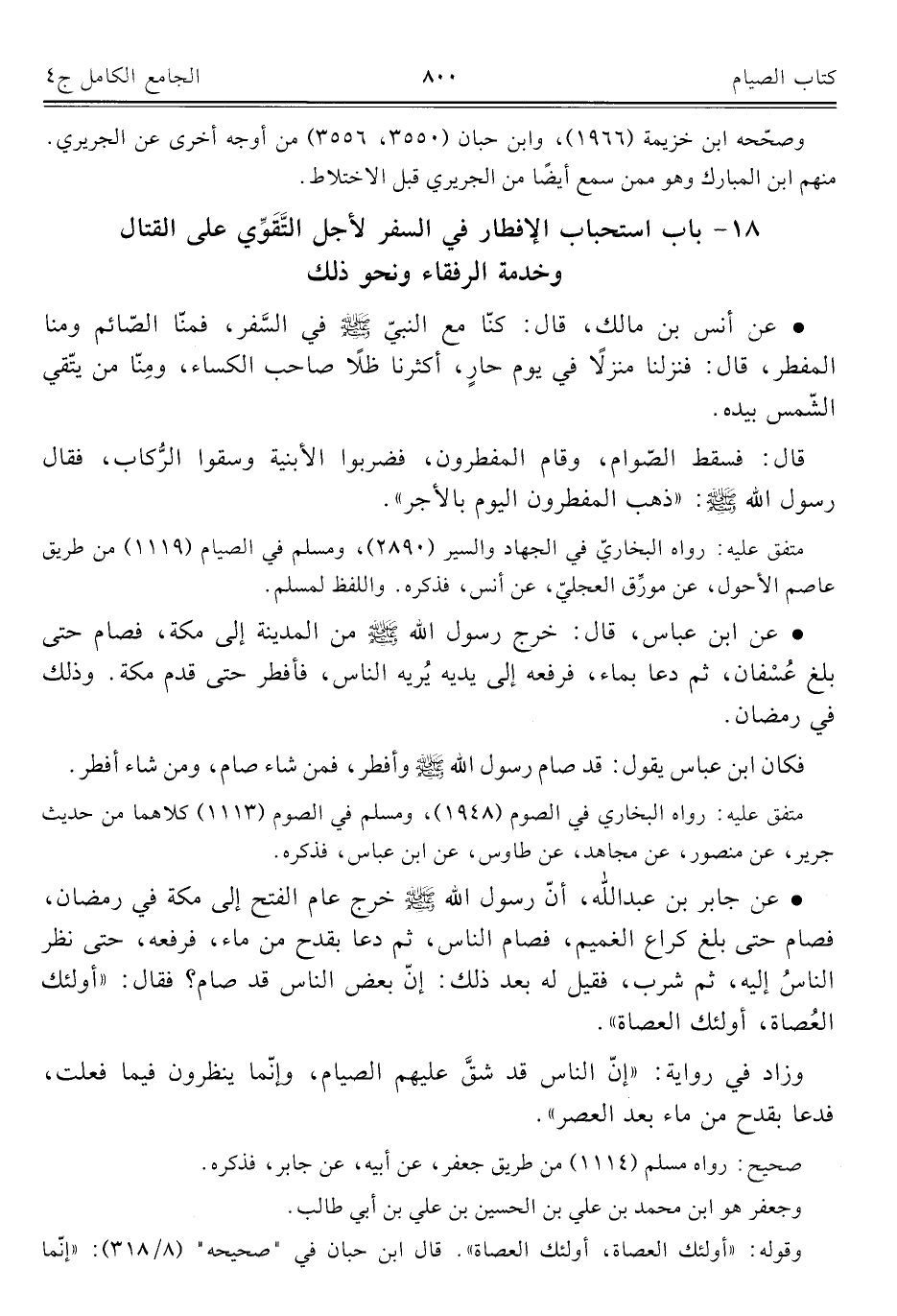 كتاب الجامع الكامل في الحديث الصحيح الشامل المرتب على أبواب الفقه (اسم الجزء: 4)