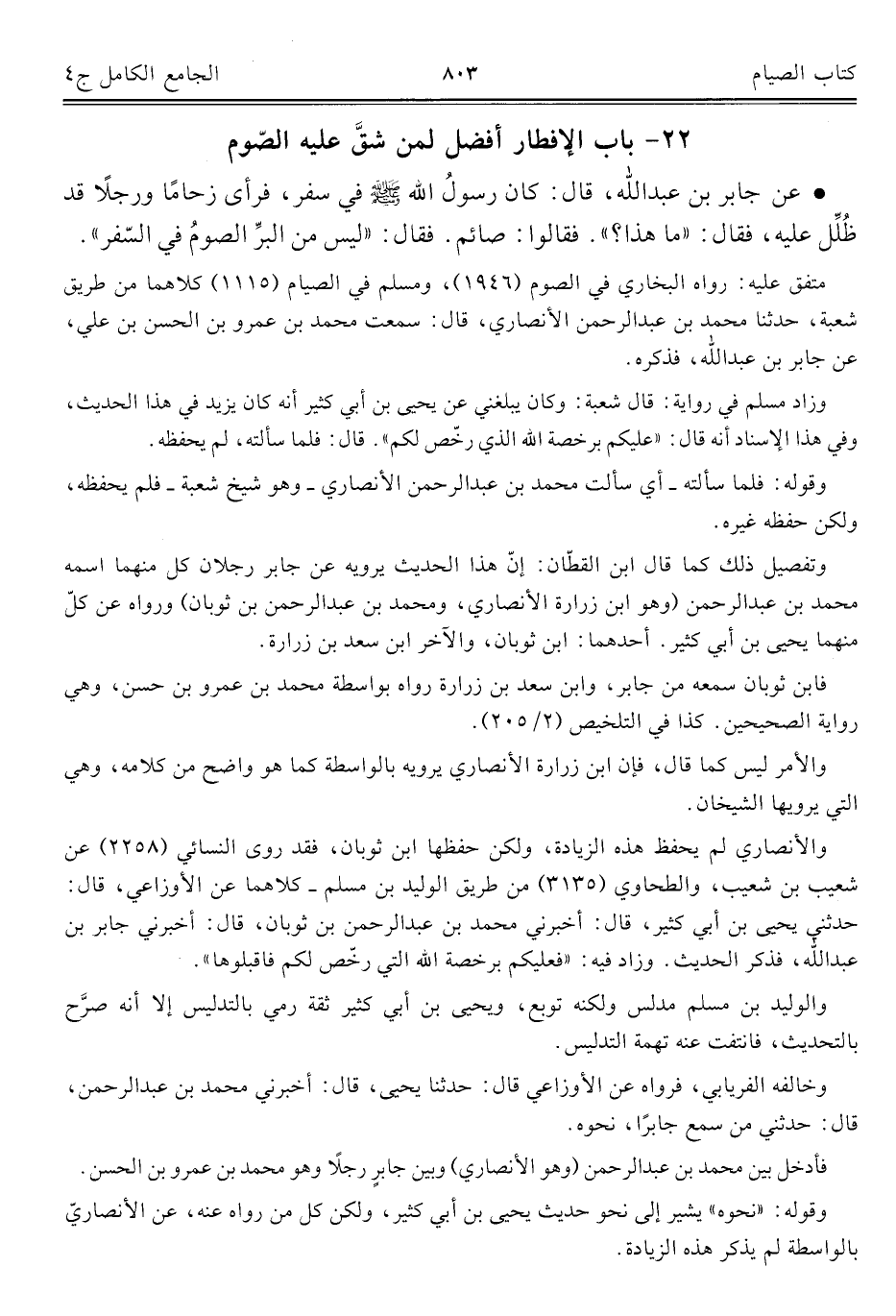 كتاب الجامع الكامل في الحديث الصحيح الشامل المرتب على أبواب الفقه (اسم الجزء: 4)