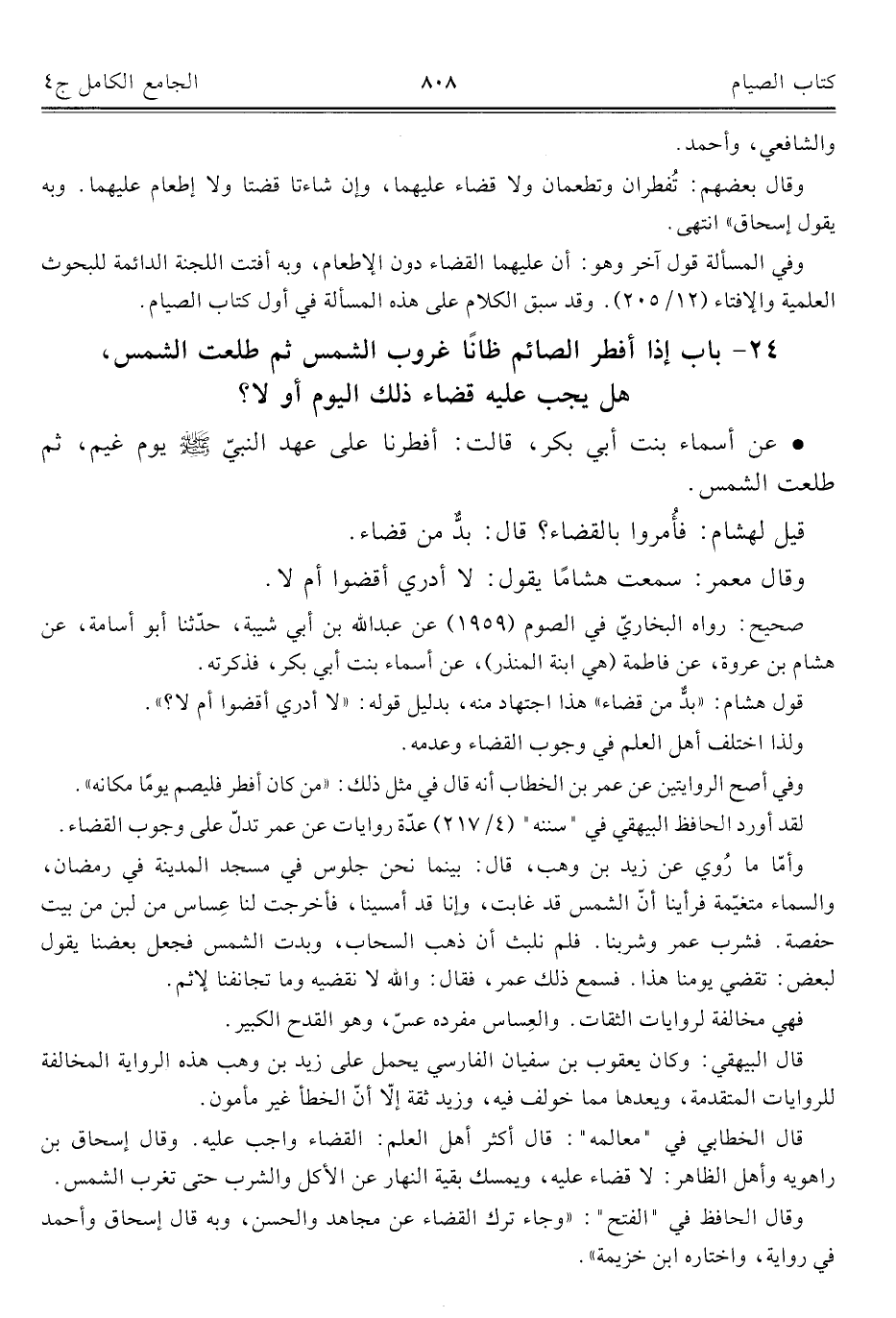 كتاب الجامع الكامل في الحديث الصحيح الشامل المرتب على أبواب الفقه (اسم الجزء: 4)