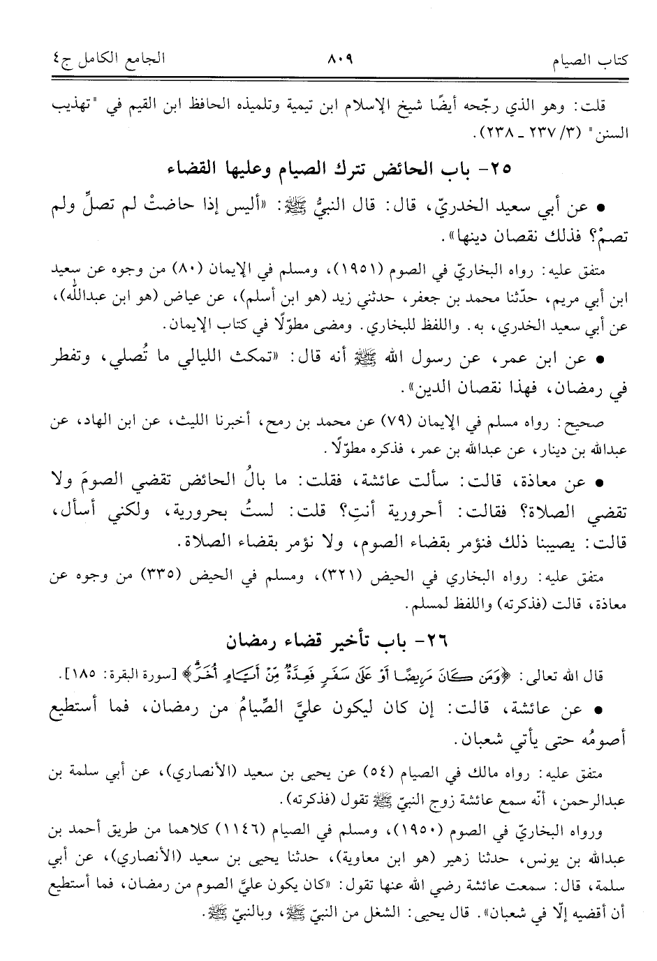 كتاب الجامع الكامل في الحديث الصحيح الشامل المرتب على أبواب الفقه (اسم الجزء: 4)