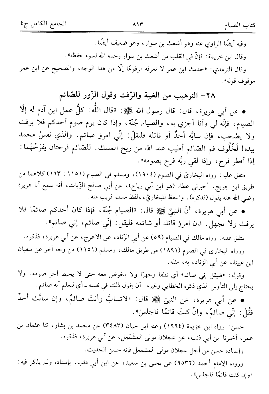 كتاب الجامع الكامل في الحديث الصحيح الشامل المرتب على أبواب الفقه (اسم الجزء: 4)