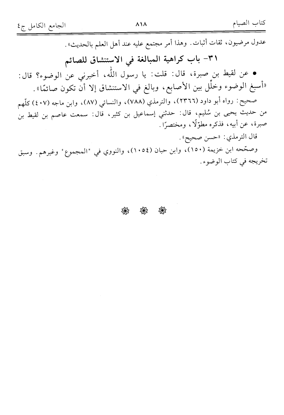 ٣١ - باب كراهية المبالغة في الاستنشاق للصائم