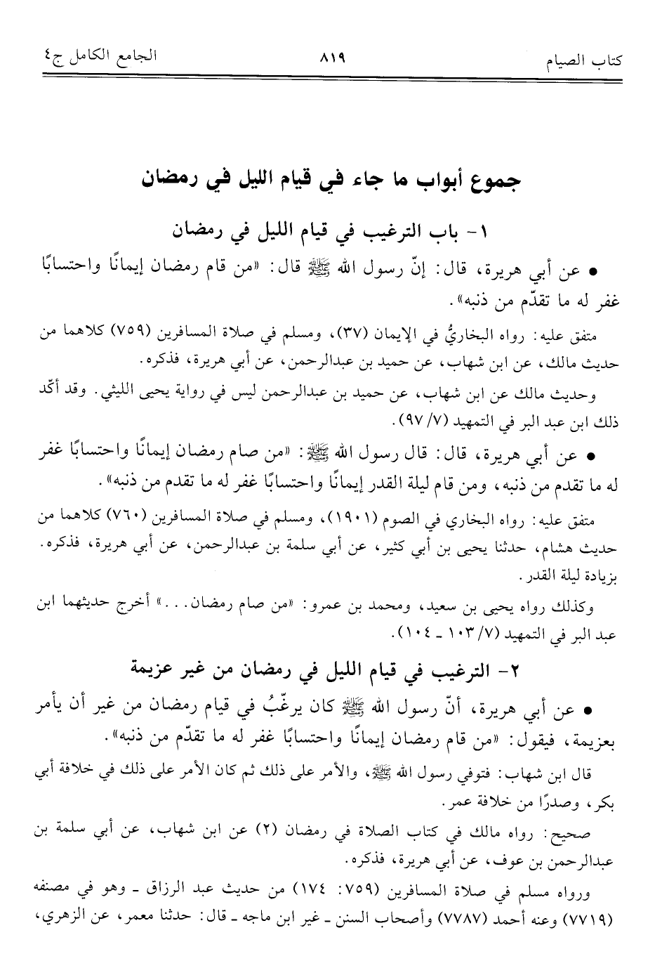 كتاب الجامع الكامل في الحديث الصحيح الشامل المرتب على أبواب الفقه (اسم الجزء: 4)