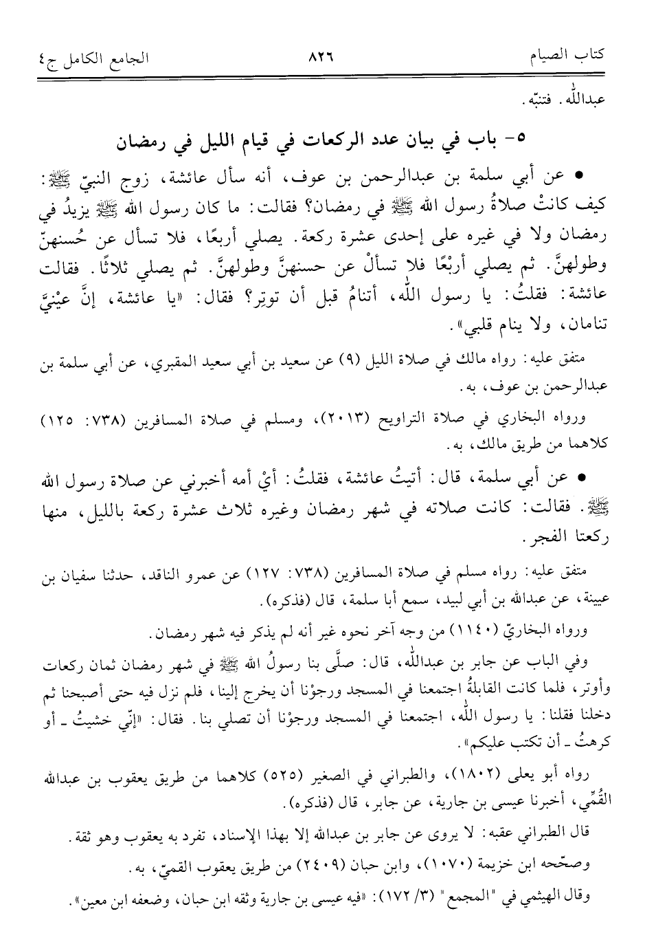 كتاب الجامع الكامل في الحديث الصحيح الشامل المرتب على أبواب الفقه (اسم الجزء: 4)