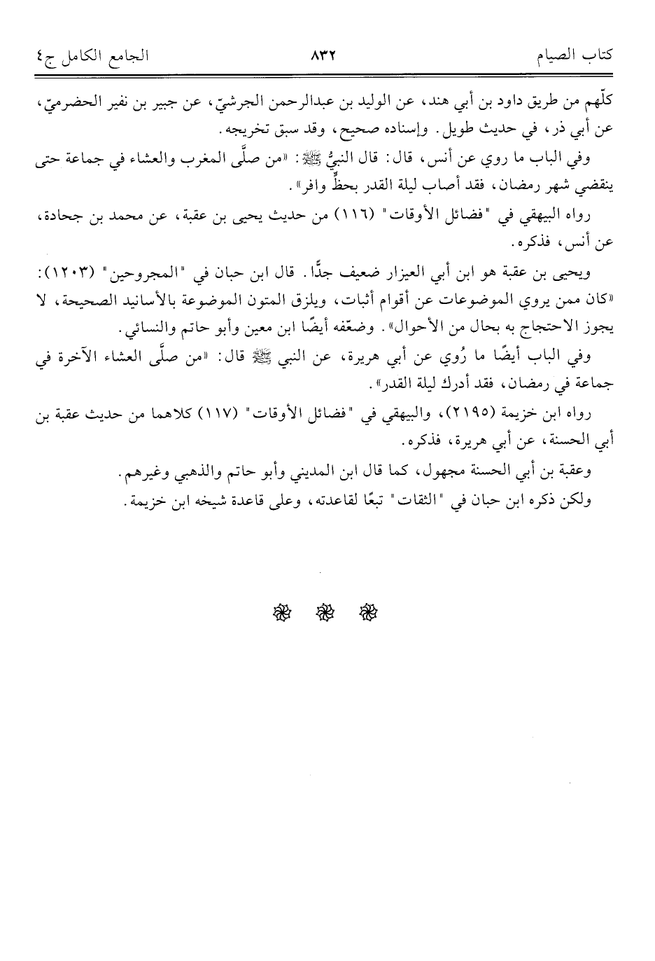 كتاب الجامع الكامل في الحديث الصحيح الشامل المرتب على أبواب الفقه (اسم الجزء: 4)