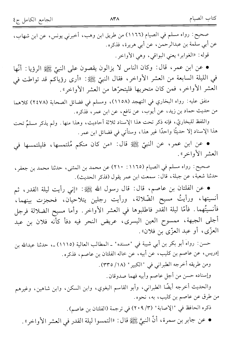 كتاب الجامع الكامل في الحديث الصحيح الشامل المرتب على أبواب الفقه (اسم الجزء: 4)