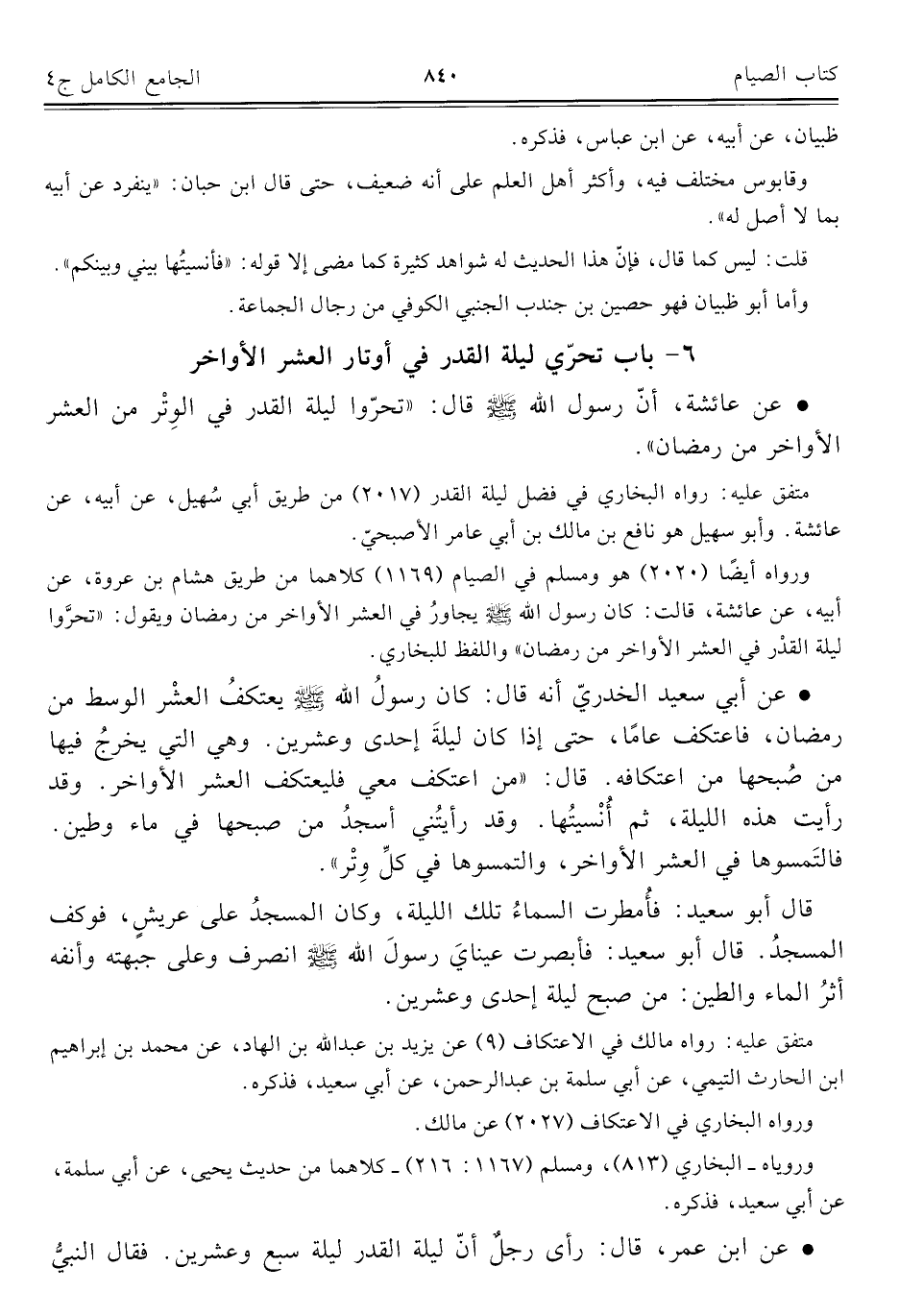 ٦ - باب تحرّي ليلة القدر في أوتار العشر الأواخر
