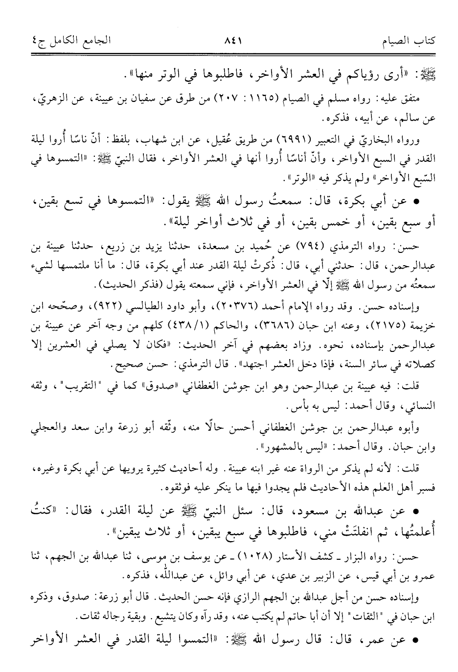 كتاب الجامع الكامل في الحديث الصحيح الشامل المرتب على أبواب الفقه (اسم الجزء: 4)