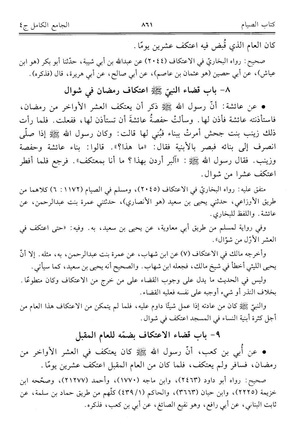 كتاب الجامع الكامل في الحديث الصحيح الشامل المرتب على أبواب الفقه (اسم الجزء: 4)