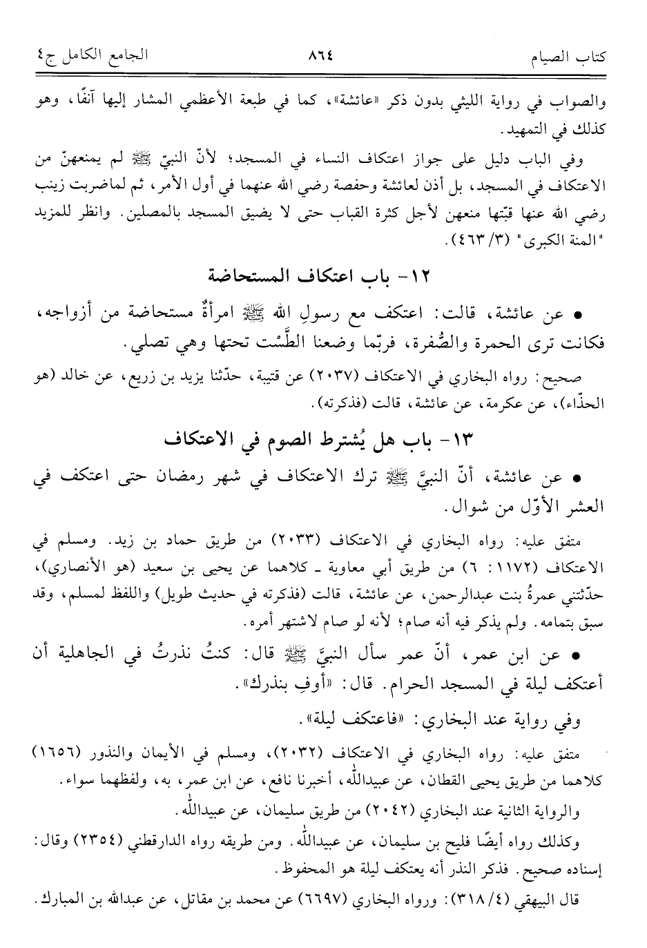 ١٣ - باب هل يُشترط الصوم في الاعتكاف