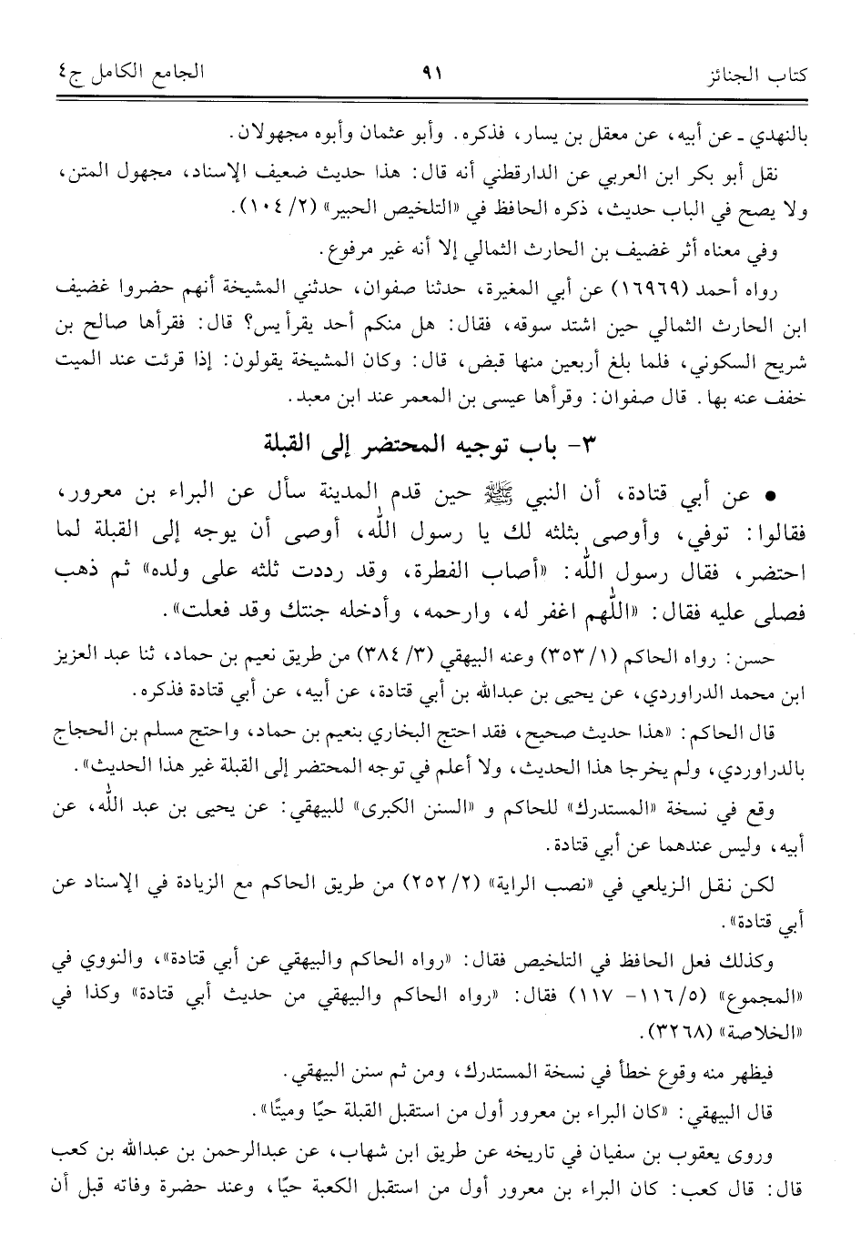 كتاب الجامع الكامل في الحديث الصحيح الشامل المرتب على أبواب الفقه (اسم الجزء: 4)