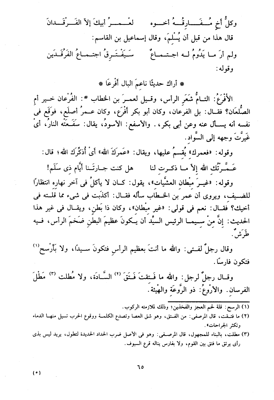 الأفرع: التام شعر الرأس وقيل لعمر بن الخطاب رضي الله عنه: الفرعان خير أم الصلعان? فقال: بل الفرعان، وكان أبو بكر أفرع، وكان عمر أصلع، فوقع في نفسه أنه يسأل عنه وعن أبي بكر. والأسفع: الأسود، يقال: سفعته النار، أي غيرت وجهه إلى السواد.