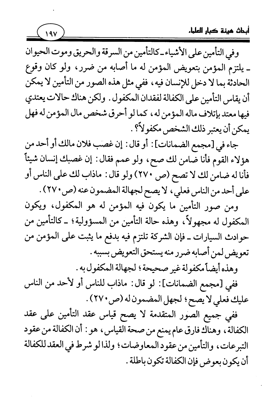 ففي جميع الصور المتقدمة لا يصح قياس عقد التأمين على عقد الكفالة، وهناك فارق عام يمنع من صحة القياس، هو: أن الكفالة من عقود التبرعات، والتأمين من عقود المعاوضات؛ ولذا لو شرط في العقد للكفالة أن يكون بعوض فإن الكفالة تكون باطلة.