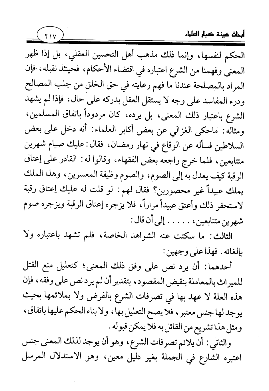 ومثاله: ما حكى الغزالي عن بعض أكابر العلماء: أنه دخل على بعض السلاطين فسأله عن الوقاع في نهار رمضان، فقال: عليك صيام شهرين متتابعين، فلما خرج راجعه بعض الفقهاء، وقالوا له: القادر على إعتاق الرقبة كيف يعدل به إلى الصوم، والصوم وظيفة المعسرين، وهذا الملك يملك عبيدا غير محصورين؟ فقال لهم: لو قلت له عليك إعتاق رقبة لاستحقر ذلك وأعتق عبيدا مرارا، فلا يزجره إعتاق الرقبة ويزجره صوم شهرين متتابعين،. . . . . إلى أن قال: