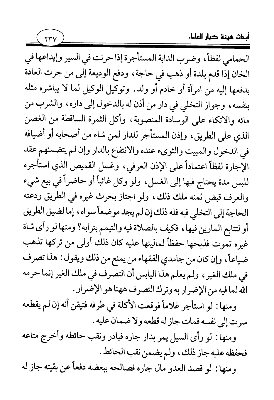 الحمامي لفظا، وضرب الدابة المستأجرة إذا حرنت في السير وإيداعها في الخان إذا قدم بلدة أو ذهب في حاجة، ودفع الوديعة إلى من جرت العادة بدفعها إليه من امرأة أو خادم أو ولد. وتوكيل الوكيل لما لا يباشره مثله بنفسه، وجواز التخلي في دار من أذن له بالدخول إلى داره، والشرب من مائه والاتكاء على الوسادة المنصوبة، وأكل الثمرة الساقطة من الغصن الذي على الطريق، وإذن المستأجر للدار لمن شاء من أصحابه أو أضيافه في الدخول والمبيت والثوي عنده والانتفاع بالدار وإن لم يتضمنه عقد الإجارة لفظا اعتمادا على الإذن العرفي، وغسل القميص الذي استأجره للبس مدة يحتاج فيها إلى الغسل، ولو وكل غائبا أو حاضرا في بيع شيء والعرف قبض ثمنه ملك ذلك، ولو اجتاز بحرث غيره في الطريق ودعته الحاجة إلى التخلي فيه فله ذلك إن لم يجد موضعا سواه، إما لضيق الطريق أو لتتابع المارين فيها، فكيف بالصلاة فيه والتيمم بترابه؟ ومنها لو رأى شاة غيره تموت فذبحها حفظا لماليتها عليه كان ذلك أولى من تركها تذهب ضياعا، وإن كان من جامدي الفقهاء من يمنع من ذلك ويقول: هذا تصرف في ملك الغير، ولم يعلم هذا اليابس أن التصرف في ملك الغير إنما حرمه الله لما فيه من الإضرار به وترك التصرف هاهنا هو الإضرار.