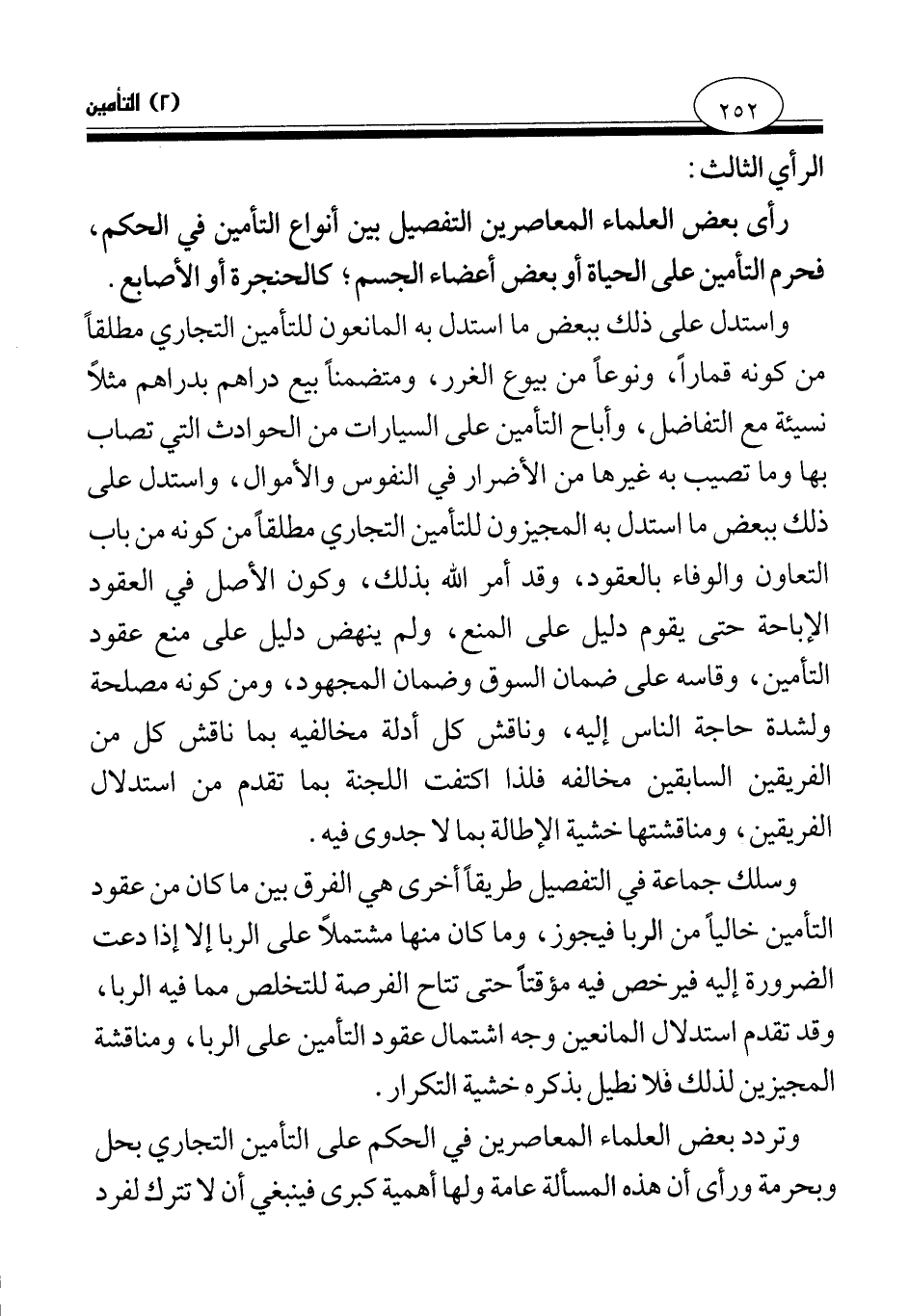 وتردد بعض العلماء المعاصرين في الحكم على التأمين التجاري بحل وبحرمة ورأى أن هذه المسألة عامة ولها أهمية كبرى فينبغي أن لا تترك لفرد