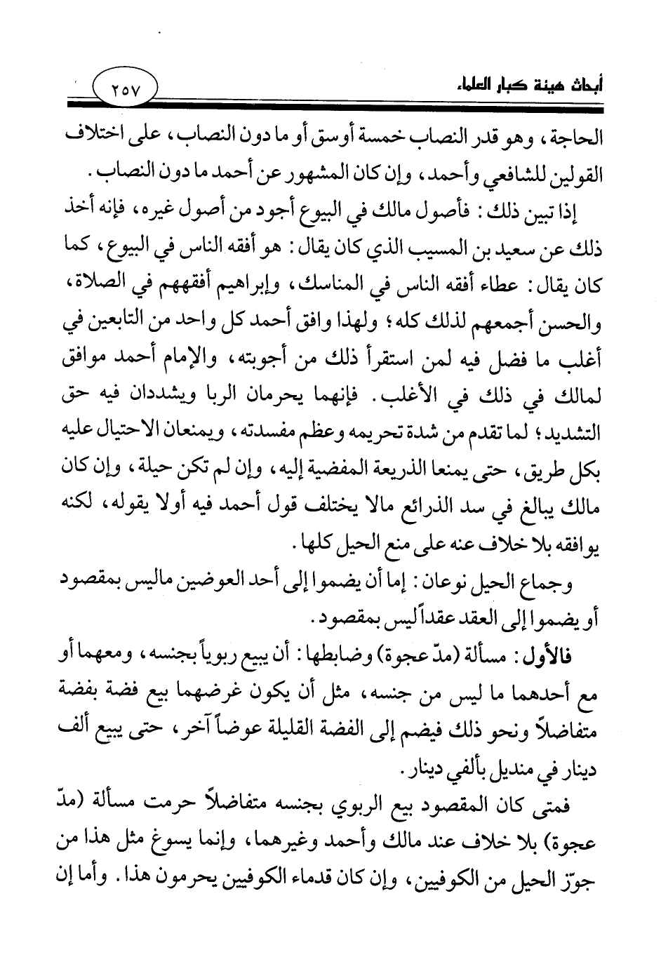 إذا تبين ذلك: فأصول مالك في البيوع أجود من أصول غيره، فإنه أخذ ذلك عن سعيد بن المسيب الذي كان يقال: هو أفقه الناس في البيوع، كما كان يقال: عطاء أفقه الناس في المناسك، وإبراهيم أفقههم في الصلاة، والحسن أجمعهم لذلك كله؛ ولهذا وافق أحمد كل واحد من التابعين في أغلب ما فضل فيه لمن استقرأ ذلك من أجوبته، والإمام أحمد موافق لمالك في ذلك في الأغلب. فإنهما يحرمان الربا ويشددان فيه حق التشديد؛ لما تقدم من شدة تحريمه وعظم مفسدته، ويمنعان الاحتيال عليه بكل طريق، حتى يمنعا الذريعة المفضية إليه، وإن لم تكن حيلة، وإن كان مالك يبالغ في سد الذرائع ما لا يختلف قول أحمد فيه أو لا يقوله، لكنه يوافقه بلا خلاف عنه على منع الحيل كلها.