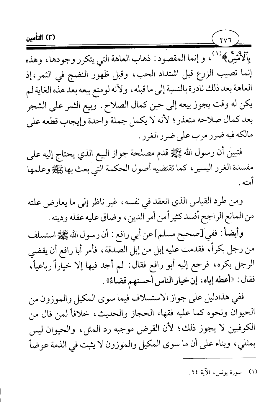 وأيضا: ففي [صحيح مسلم] عن أبي رافع: «أن رسول الله صلى الله عليه وسلم استسلف من رجل بكرا، فقدمت عليه إبل من إبل الصدقة، فأمر أبا رافع أن يقضي الرجل بكره، فرجع إليه أبو رافع فقال: لم أجد فيها إلا خيارا رباعيا، فقال: أعطه إياه، إن خيار الناس أحسنهم قضاء (¬1) » .