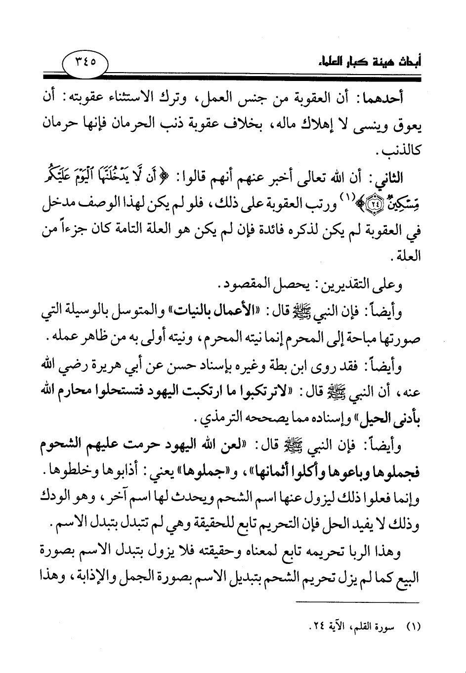 وأيضا: فإن النبي صلى الله عليه وسلم قال: «الأعمال بالنيات (¬2) » والمتوسل بالوسيلة التي صورتها مباحة إلى المحرم إنما نيته المحرم، ونيته أولى به من ظاهر عمله. وأيضا: فقد روى ابن بطة وغيره بإسناد حسن عن أبي هريرة رضي الله عنه، أن النبي صلى الله عليه وسلم قال: «لا ترتكبوا ما ارتكبت اليهود فتستحلوا محارم الله بأدنى الحيل» وإسناده مما يصححه الترمذي.