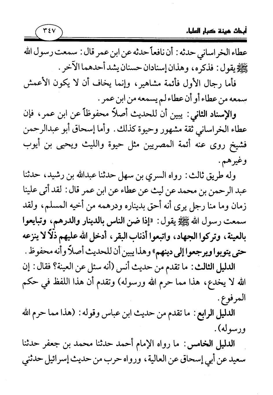 الدليل الثالث: ما تقدم من حديث أنس «أنه سئل عن العينة؟ فقال: إن الله لا يخدع، هذا مما حرم الله ورسوله» وتقدم أن هذا اللفظ في حكم المرفوع.