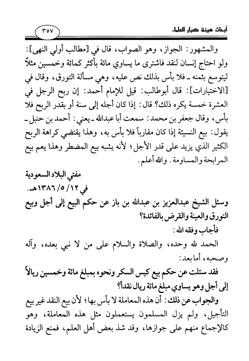 وسئل الشيخ عبد العزيز بن عبد الله بن باز عن حكم البيع إلى أجل وبيع التورق والعينة والقرض بالفائدة؟